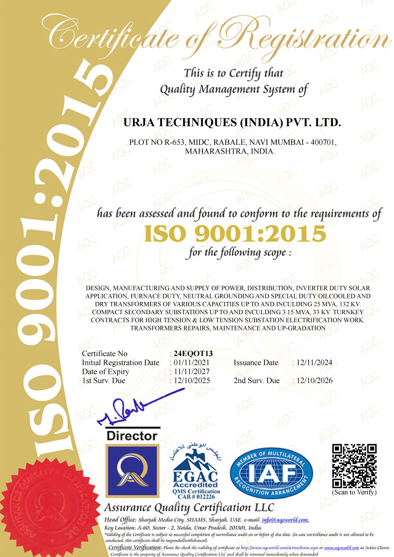 To initiate quality up gradation, value addition and forward integration steps to enhance global competitiveness.To continually improve quality management systems to offer product and services which meet the requirements of our customers in the power sector.To improve Customer satisfaction in terms of Performance, Reliability & Timely Delivery.
